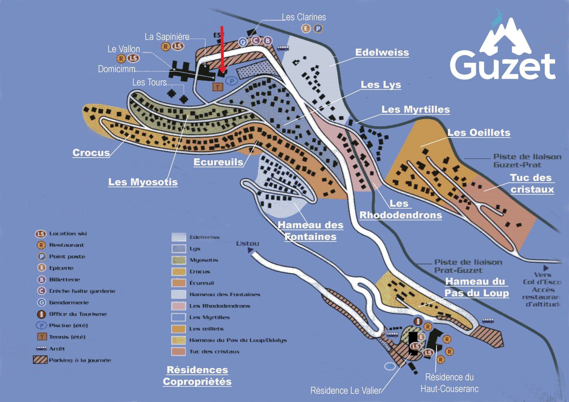 Résidence de 2 étages + chambres des duplex, de 23 appartements, construite en 1984 au centre de la station, face à l’ESF et aux pistes. Très proche des commerces, des restaurants et à 100m de la garderie (Hiver).