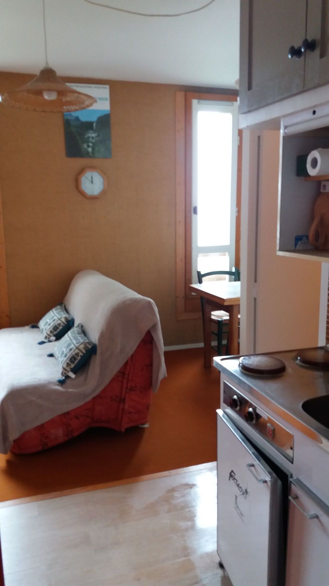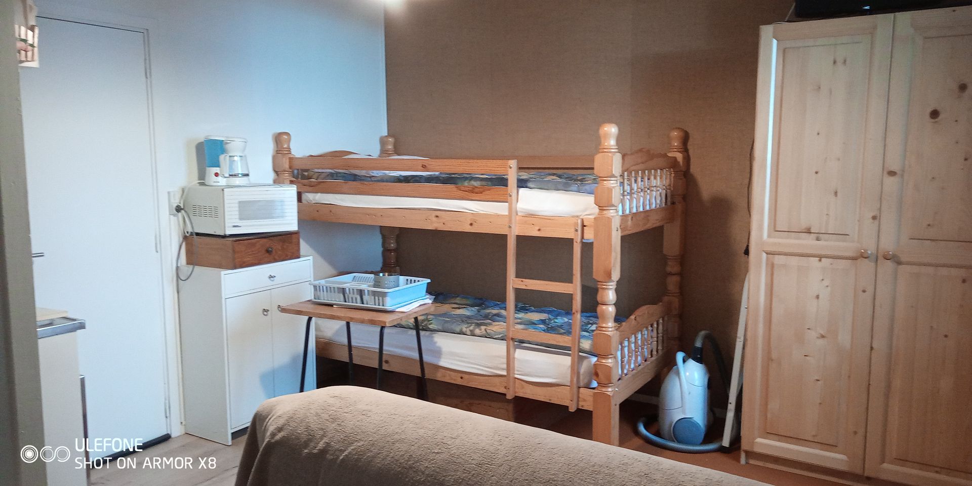 - Une deuxième pièce 10 m² avec lits superposés (lit du haut interdit au moins de 6 ans) kitchenette encore en place + placard